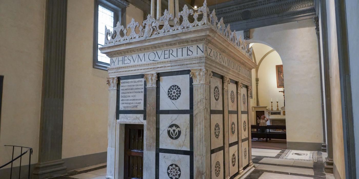 Given the proximity of the ex-church to the Rucellai family palace across the street, the museum path also includes the Cappella Rucellai (Rucellai Chapel), part of a phase in which the family requested the intervention of the architect Leon Battista Alberti (1457-67). In this space, you can visit the the sacellum of the Holy Sepulchre of Leon Battista Alberti, one of the “wonders” of Florentine Renaissance.