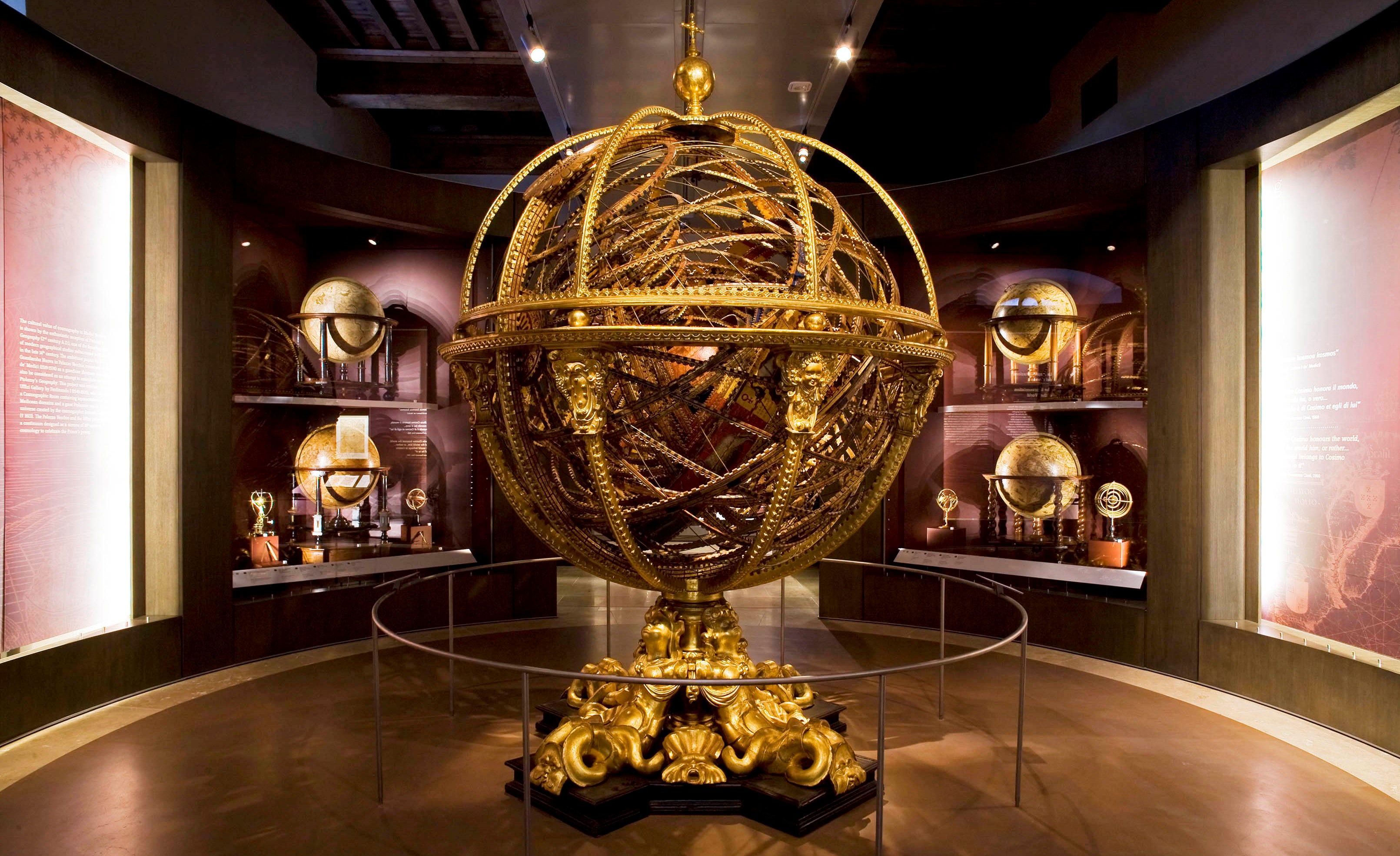 Visits to the museum begin on the first floor with the instruments collected by members of the Medici family, boasting elaborate astrolabes, beautiful dials, solar and night watches, compasses and nautical instruments, often objects of hand-crafted sophistication executed by some of the most renowned Tuscan and foreign creators. This exceptional collection, begun by Cosimo I de’Medici, was originally housed in the Map Room of Palazzo Vecchio. A hall is dedicated to the Accademia del Cimento, the first European scientific association, active in Florence between 1657 and 1667 at the Medici Court. Objects collected later on by the Lorena Grand Dukes to explain the fundamental laws of mechanics, electrostatics and pneumatics are displayed on the second floor. The itinerary ends with the interactive halls: a space where young and older visitors can use interactive exhibits to better understand the principles and operation of some of the original instruments displayed in the museum halls.