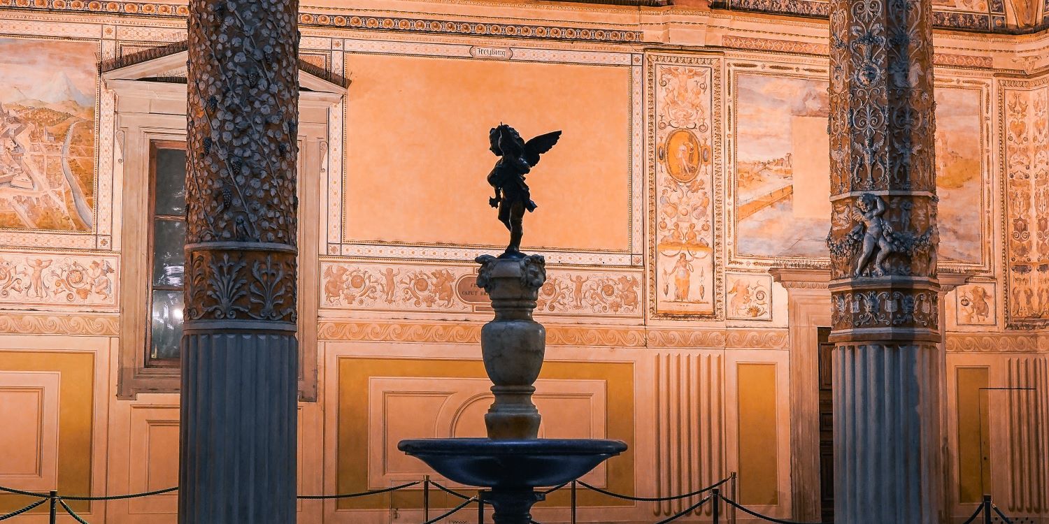 Salons et salles privées somptueusement décorés par quelques-uns des artistes les plus célèbres de la Renaissance florentine, avec des meubles d'époque et des chefs-d'œuvre tels que la Judith de Donatello, le Génie de la Victoire de Michel-Ange et le Putto de Andrea del Verrocchio...