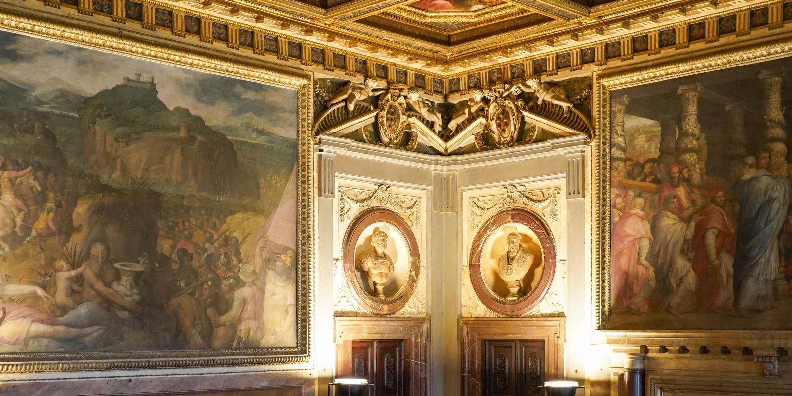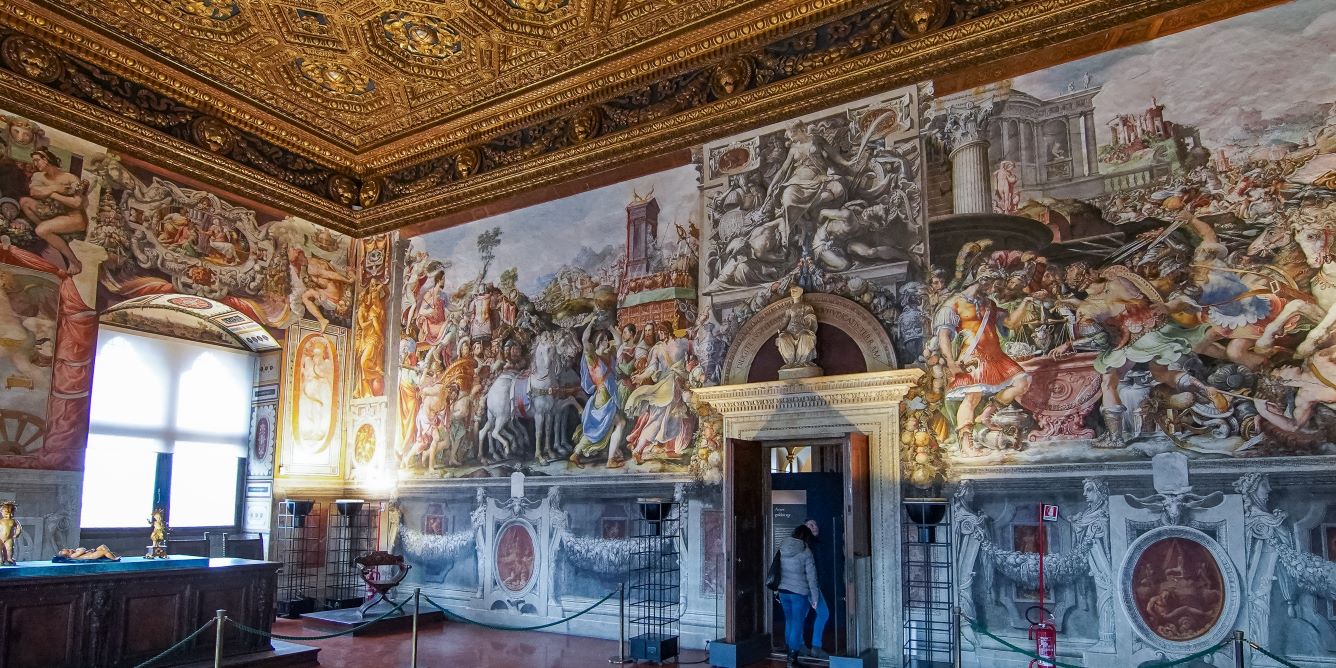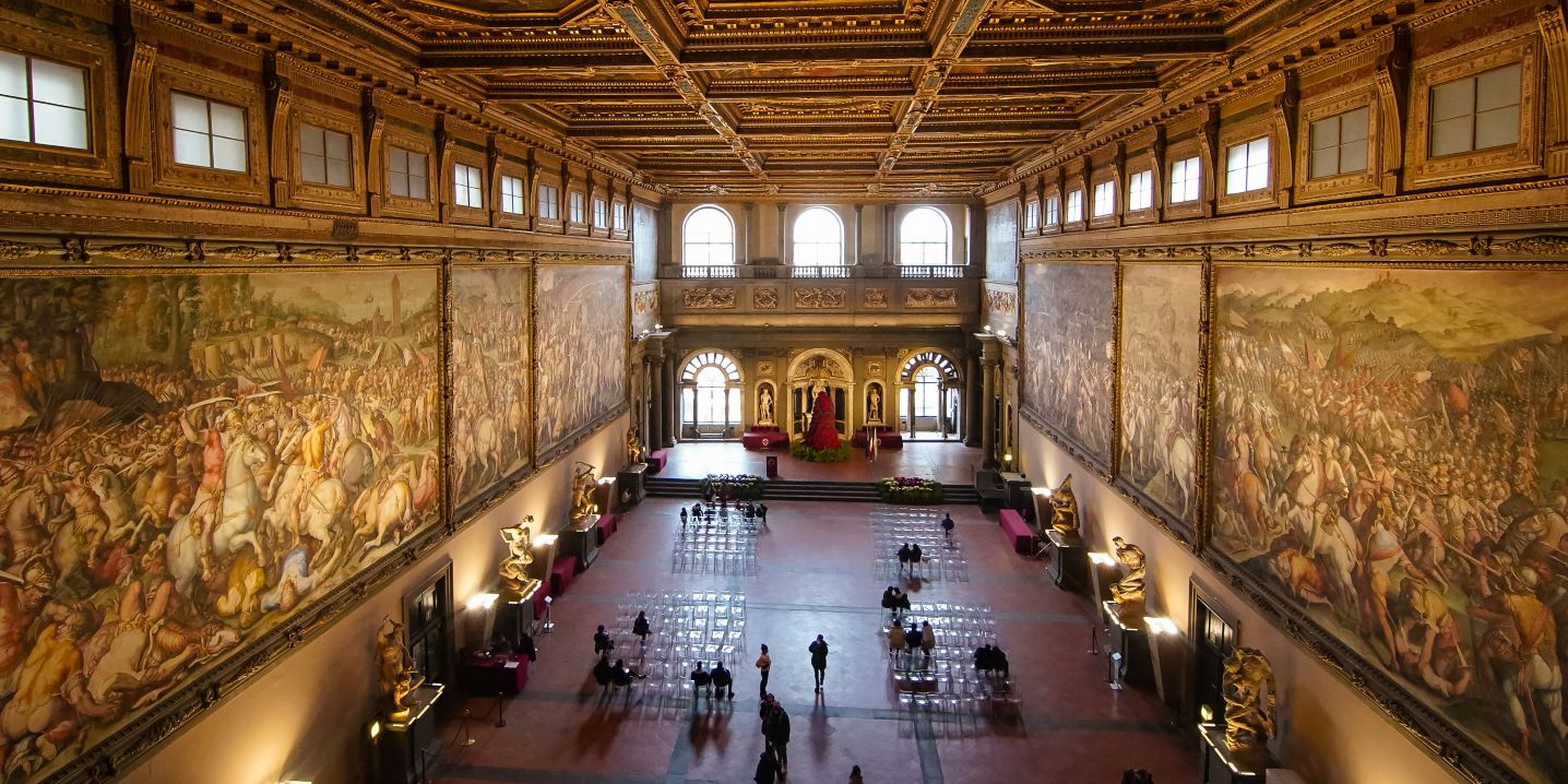 Salons et salles privées somptueusement décorés par quelques-uns des artistes les plus célèbres de la Renaissance florentine, avec des meubles d'époque et des chefs-d'œuvre tels que la Judith de Donatello, le Génie de la Victoire de Michel-Ange et le Putto de Andrea del Verrocchio. Palazzo Vecchio, qui fut pendant plus de sept siècles le centre du gouvernement florentin, est le monument symbole de la ville de Florence. Construit en 1299 pour abriter l'organe suprême de la République, il fut transformé en palais ducal au milieu du XVIe siècle ; il est aujourd'hui le siège de la municipalité de Florence.