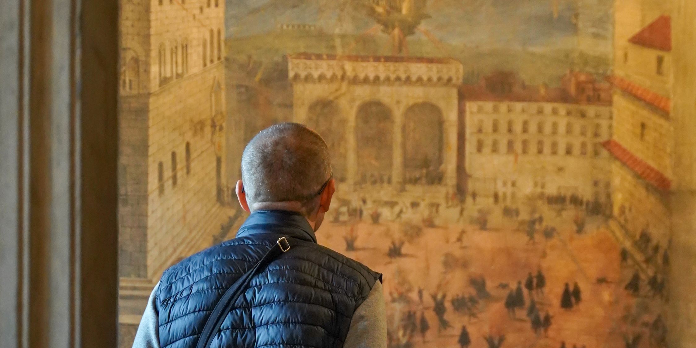 La visite commence dans la cour de Michelozzo, décorée de stucs et de fresques, et se poursuit, à l'étage supérieur, à travers le Salone dei Cinquecento, où un cycle majestueux de peintures célèbre l'apothéose de Cosimo de' Medici et de la ville de Florence et où de nombreuses statues accompagnent le célèbre Génie de la Victoire de Michel-Ange. Au deuxième étage du musée se trouvent les salles privées de la cour des Médicis, somptueusement décorées et meublées, et parmi elles, la magnifique Chapelle d'Éléonore avec des peintures de Agnolo Bronzino. Dans la Salle des Cartes Géographiques, un globe terrestre d'une taille exceptionnelle et plus de cinquante panneaux peints offrent une vue extraordinaire sur toutes les parties du monde connues au XVIe siècle. Le Quartier de la Mezzanine abrite une précieuse collection de peintures et de sculptures du Moyen Âge et de la Renaissance offerte à la ville de Florence par Charles Loeser.