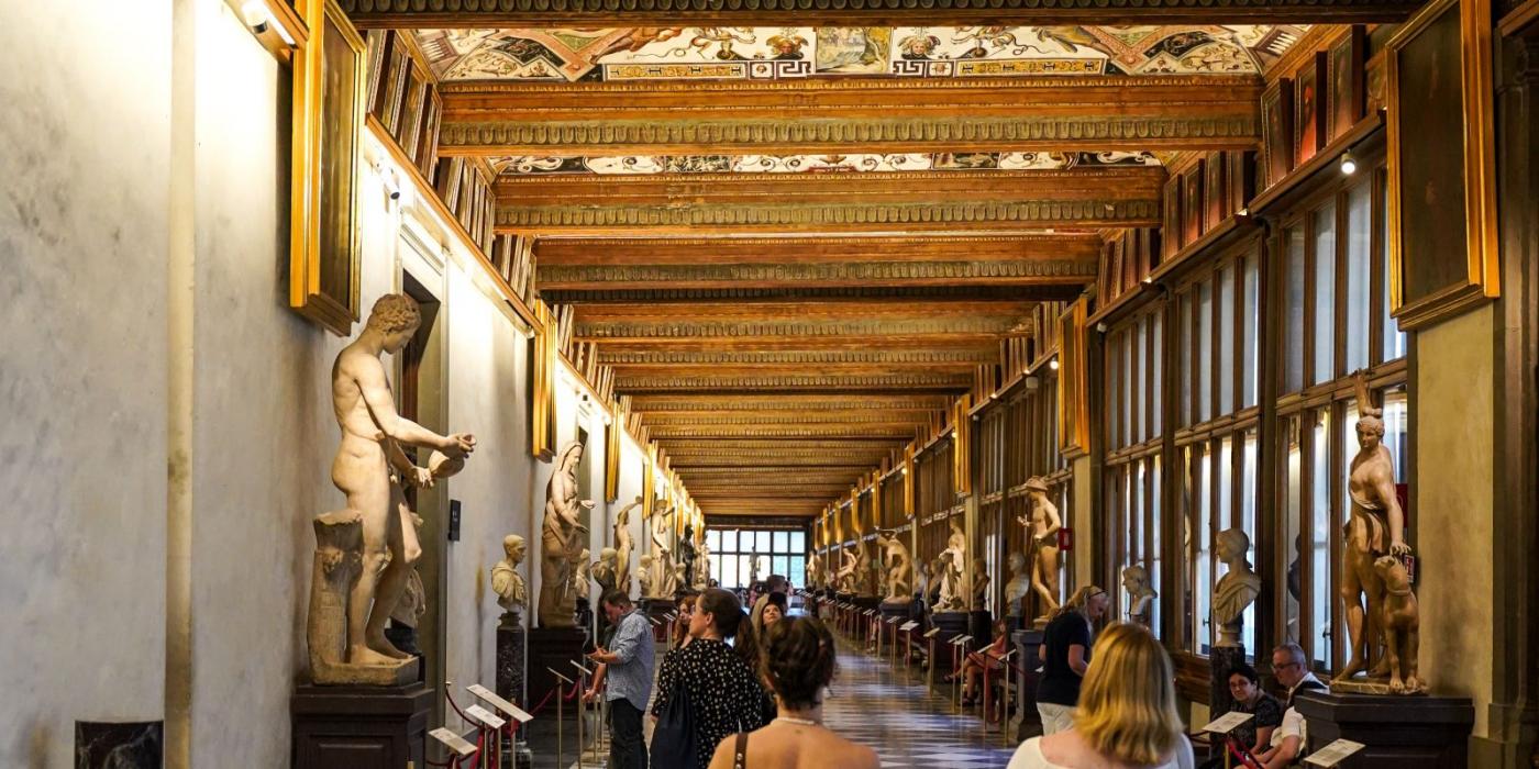 La Galleria degli Uffizi è il museo più visitato in Italia per un motivo molto semplice: offre al visitatore un'enorme concentrazione di capolavori assoluti, in particolare dipinti rinascimentali per i quali Firenze è divenuta famosa in tutto il mondo. La Galleria si trova al primo e secondo piano di un ampio edificio eretto tra il 1560 e il 1580, progettato da Giorgio Vasari per essere il quartier generale degli uffici amministrativi del Granducato di Toscana. In origine ospitava dipinti e sculture della collezione Medici, ed era aperto a una cerchia ristretta di pubblico già nel XVI secolo.